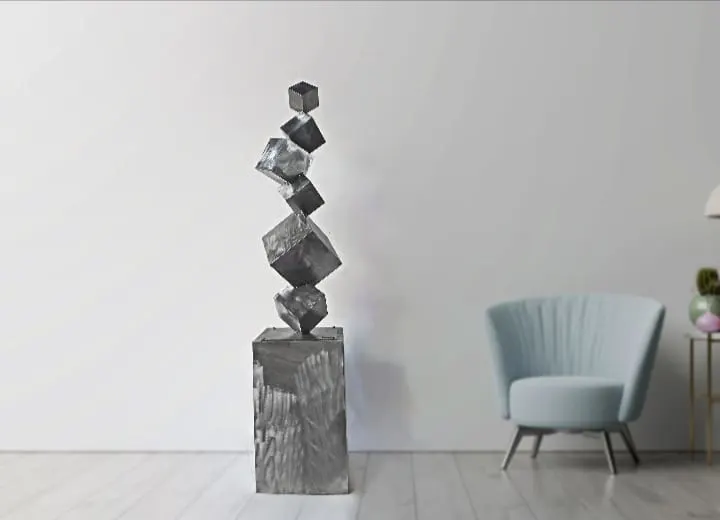 Escultura de cubos de acero jaspeado lacado trasparente de 1.800 de altura